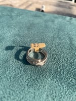 A sterling silver ring hallmarked with "925" and "Thailand", this ring has rows that wrap around the band before separating and instead interlocking with each other in the middle. We love the style, comfort, and overall feel of this one so much
